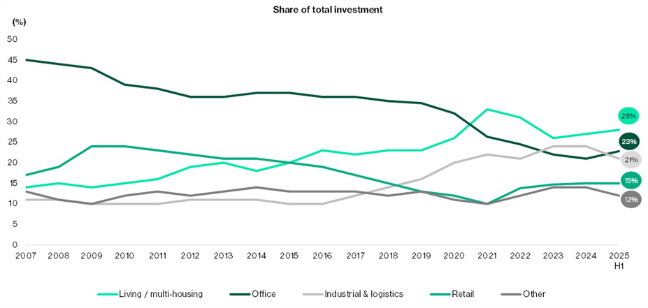 Figure 5: Real Investment by Sector (%), 2007 – H1 2025