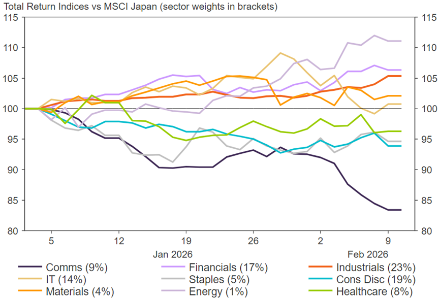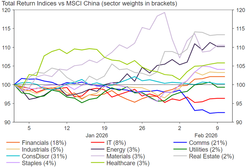 Figure 1: Strong Asia ex-Japan equities performance YTD to February 10 (outperforming DM Equities)