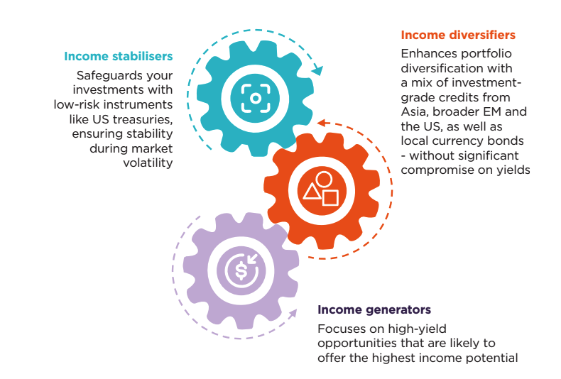 The Fullerton Lux Funds – Flexible Credit Income adopts a multi-pronged approach by allocating across different types of bonds.